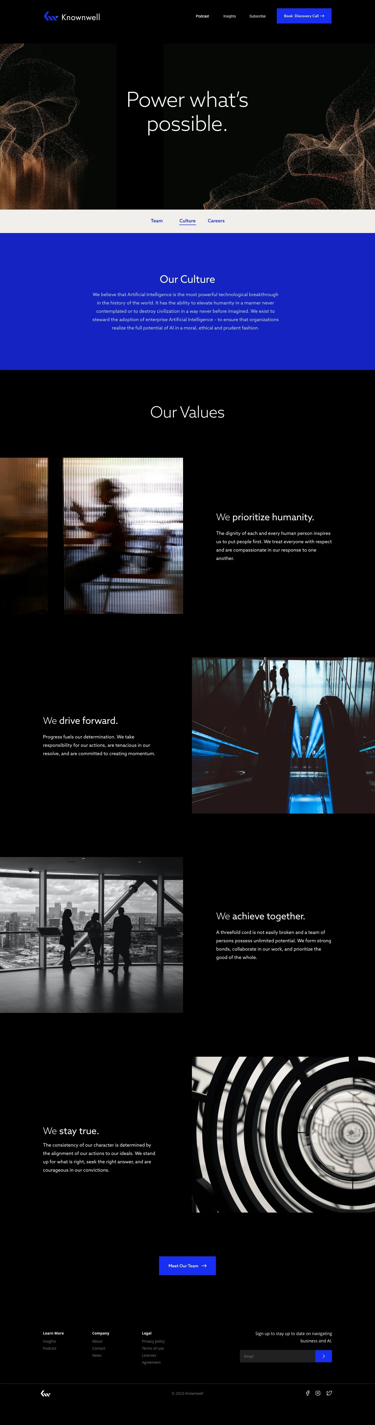 I developed the visual identity and strategic UX framework for Knownwell, an AI-driven commercial intelligence platform that turns data and communications into actionable insights for growth and retention. My work spans brand identity, logo, site UX, and foundational app UI direction — anchoring design in clarity, strategic purpose, and scalable experience.